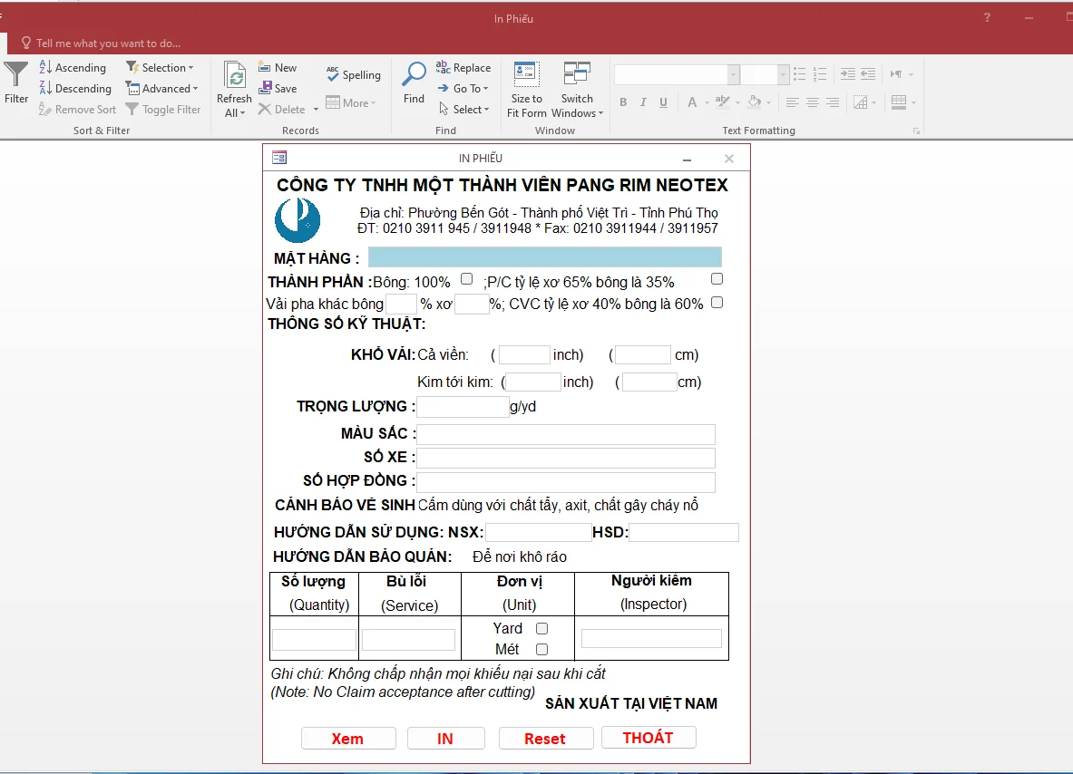 Chương Trình Access In Phiếu, Tem Và Nhãn Sản Phẩm + Báo Cáo Word Tham Khảo