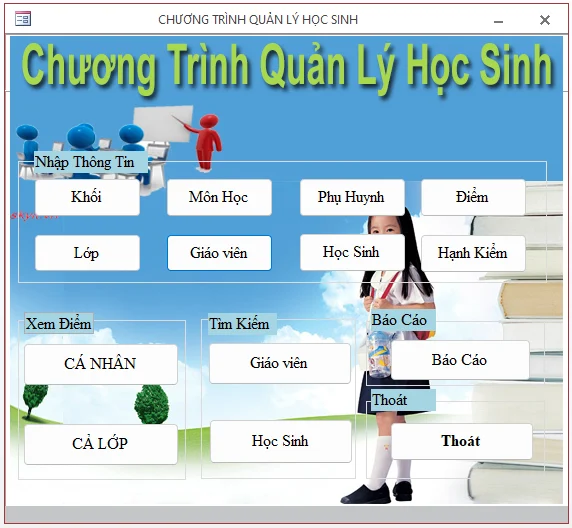 Đồ án Access quản lý học sinh, file Access học sinh, Access quản lý điểm, cơ sở dữ liệu học sinh, Access quản lý trường học, bài tập lớn Access, đồ án Microsoft Access full chức năng