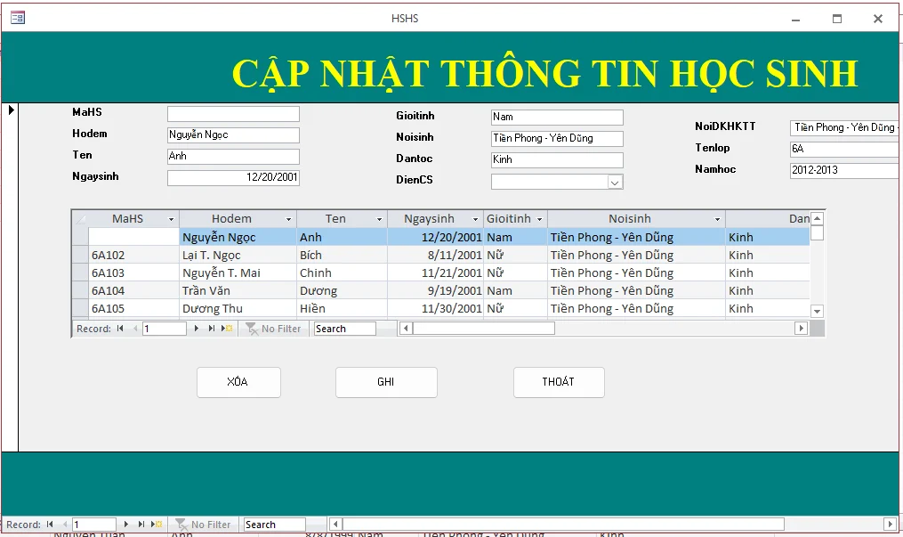 Đồ án Access Quản Lý Học Sinh Cấp 2 THCS – Mẫu HS8