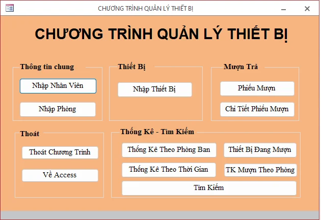 🎓 Đồ án Access Quản Lý Mượn Trả Thiết Bị Dạy Học Dạy Học + Báo Cáo Word Chuẩn